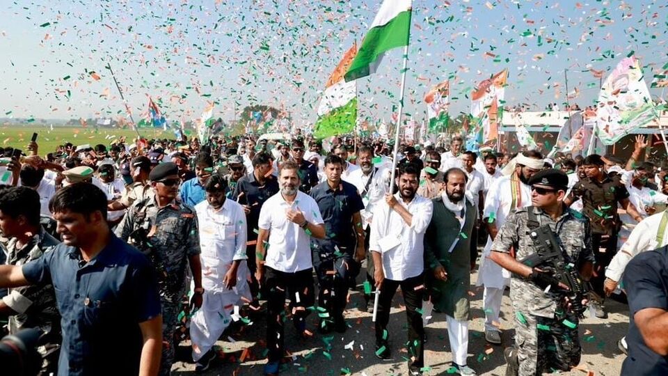 भारत जोडो यात्रा तेलंगणात दाखल झाल्यानंतर राहुल गांधींना पाठिंबा देण्यासाठी तरुणांसह महिलांनी मोठी गर्दी केल्याचं पाहायला मिळालं.(twitter)