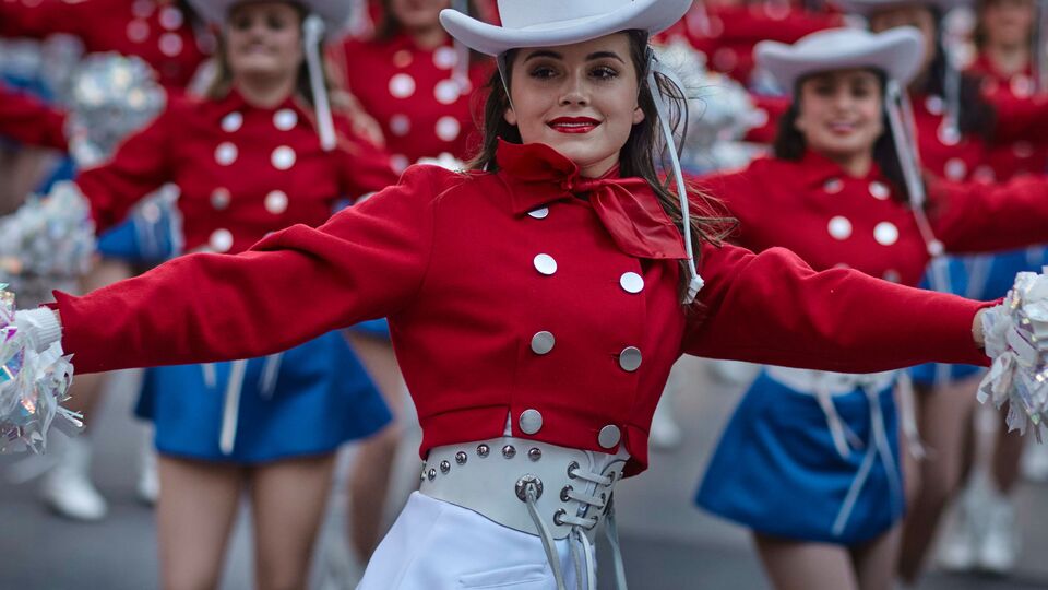 न्यूयॉर्कमधील थँक्सगिव्हिंग परेडमधील प्रात्यक्षिकातील एक दृश्य.. अवघ्या अमेरिकेत मोठ्या प्रमाणावर नागरिक या दिवशी उत्साहात रस्त्यावर उतरतात. नोव्हेंबर महिन्याचा शेवटचा शुक्रवार थँक्सगिव्हिंग डे म्हणून साजरा केला जातो.