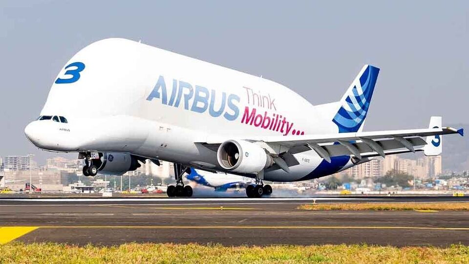 Airbus Beluga at Rajiv Gandhi International Airport Hyderabad : जगातील सर्वात महाकाय विमानांपैकी एक असलेलं एअरबस बेलूगा हे विमान हैदराबादेतील विमानतळावर उतरलं आहे.