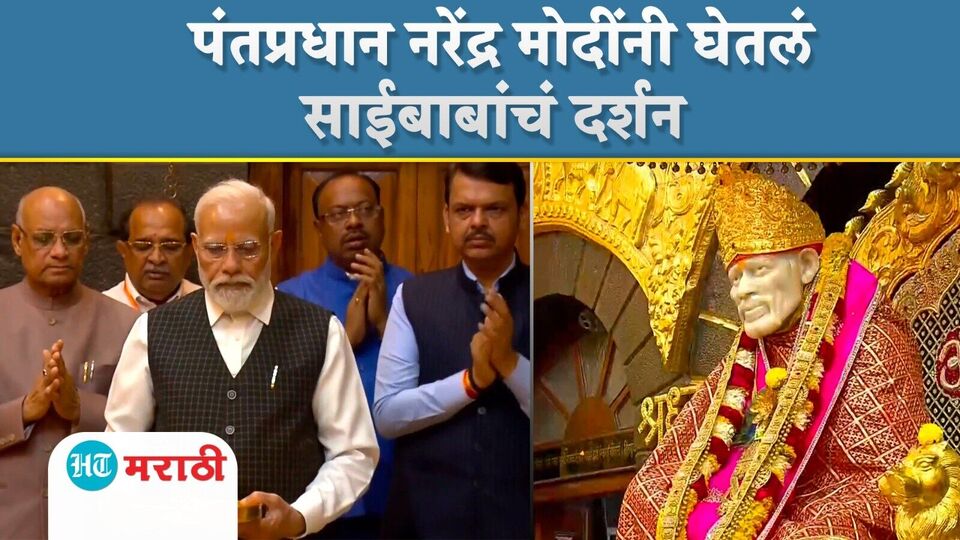 PM Narendra Modi in Shirdi - पंतप्रधान नरेंद्र मोदींनी आज शिर्डीत येऊन साईबाबांचं दर्शन घेतलं. पंतप्रधानांनी शिर्डीत उभारण्यात आलेल्या नवीन दर्शन रांग संकुलाचे उदघाटन केले. येथे १० हजारांहून अधिक भाविकांच्या एकत्रित आसनक्षमतेसह सुसज्ज प्रतिक्षालय उभारण्यात आले आहे. यामध्ये कपडे बदलण्यासाठी खोल्या, स्वच्छतागृह, बुकिंग काउंटर, प्रसाद काउंटर, माहिती केंद्र इत्यादी सुविधांची तरतूद आहे. ऑक्टोबर २०१८मध्ये या दर्शन रांग संकुलाची पायाभरणी झाली होती.
